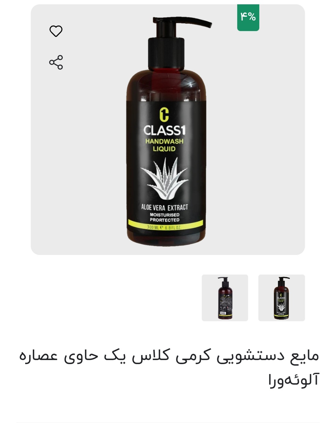 مایع دستشویی کرمی کلاس یک حاوی عصاره آلوئهورا۳۰۰ میل