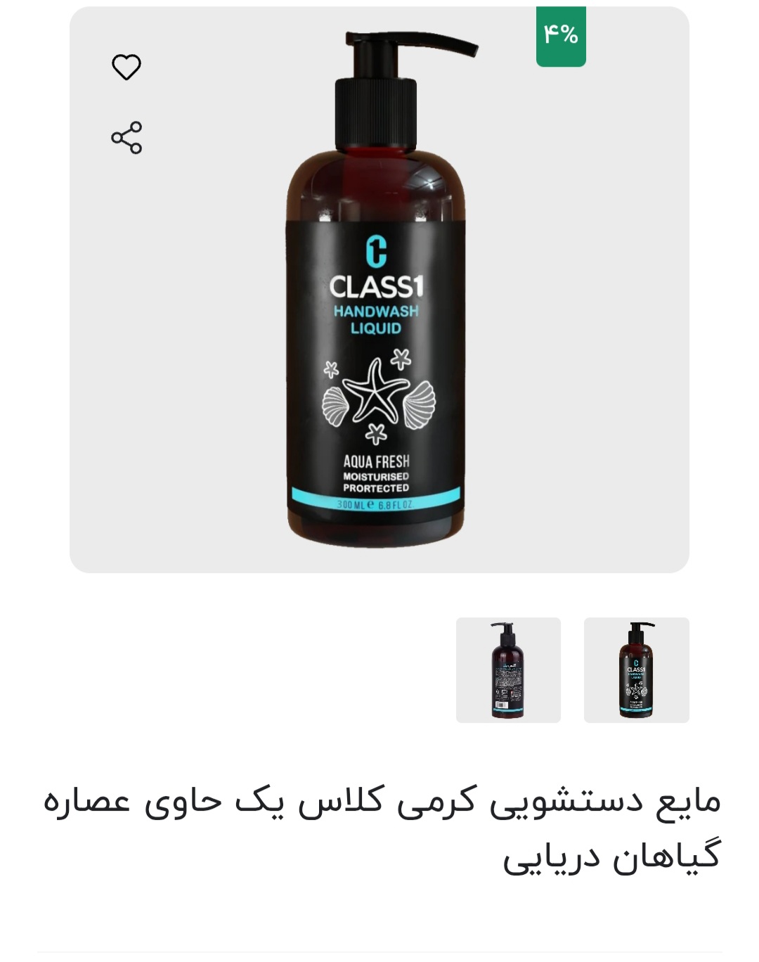 مایع دستشویی کرمی کلاس یک حاوی عصاره گیاهان دریایی۳۰۰میل