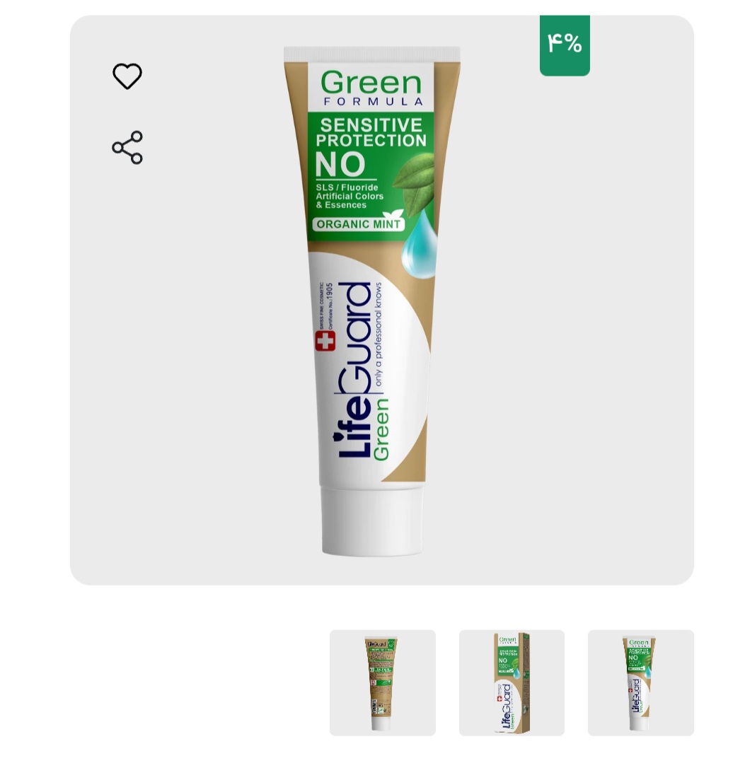 خمیر دندان محافظ دندان و لثه حساس گرین برند لایف گارد با حجم 100 گرم
