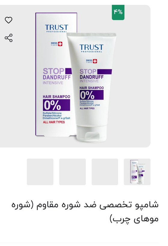 شامپو تخصصی ضد شوره مقاوم (شوره موهای چرب ) تراست ۲۰۰میل