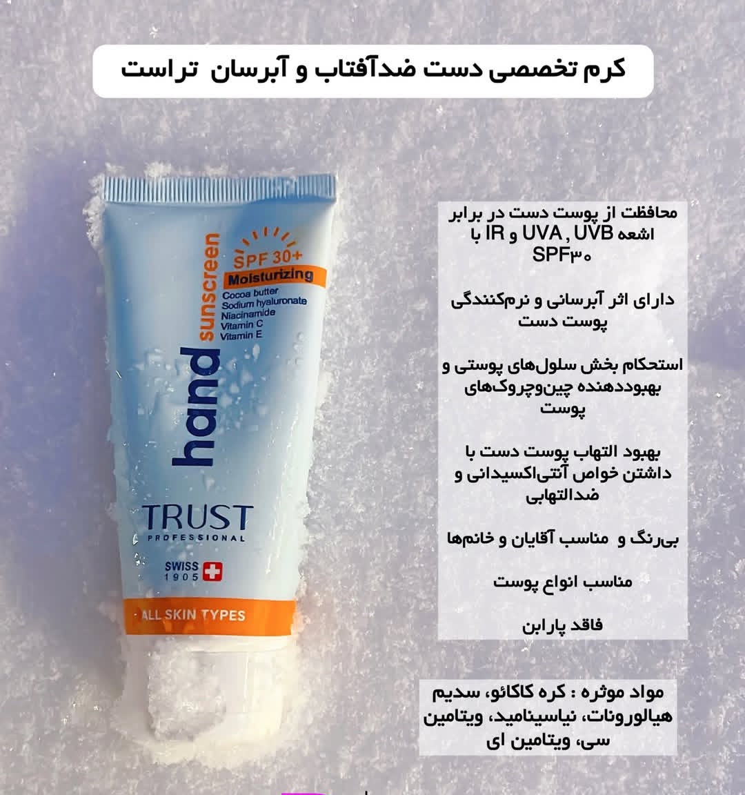 کرم تخصصی دست ضدآفتاب و آبرسان +SPF30 بیرنگ تراست ۶۰ میل